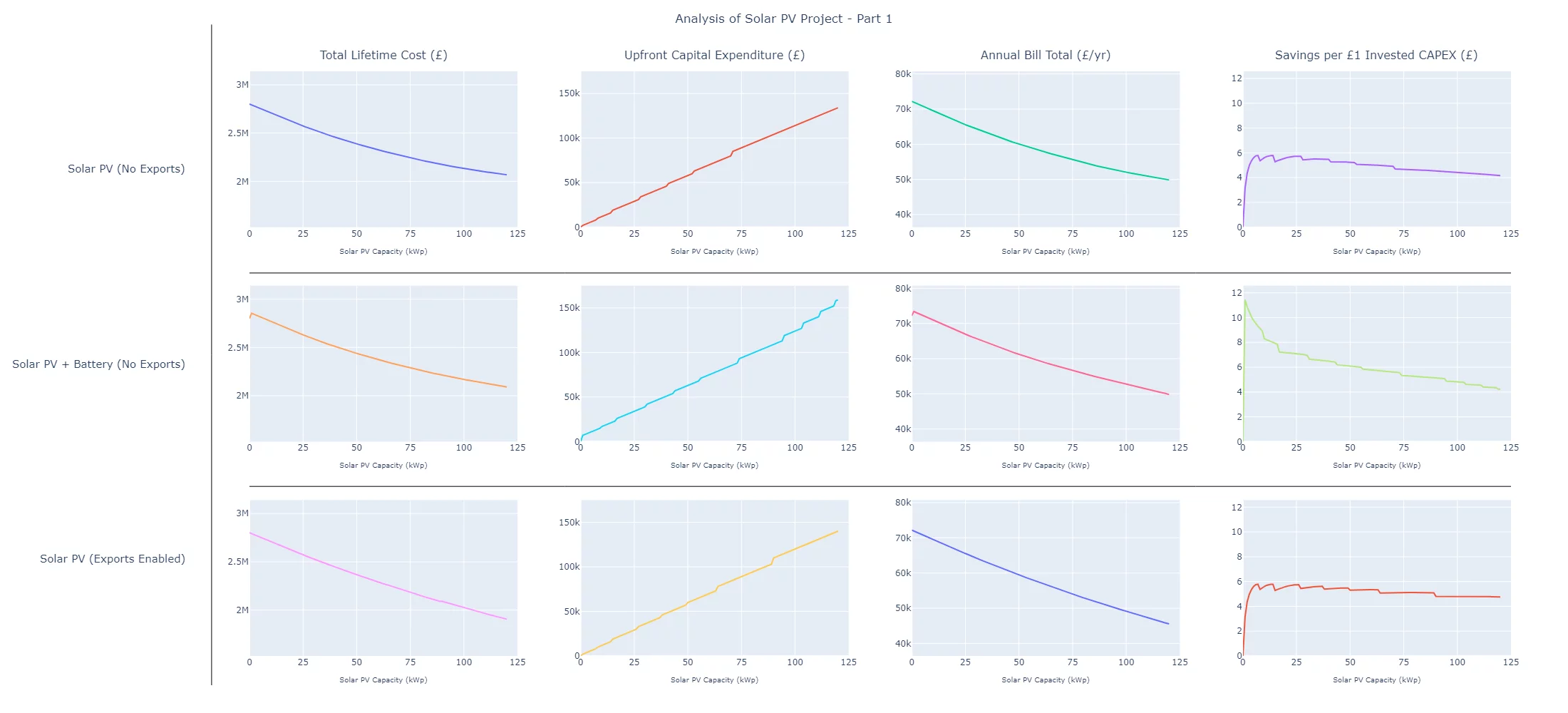 We can model the lifetime performance of an existing/planned energy system, providing a full LCA, sensitivity analysis and summary report.